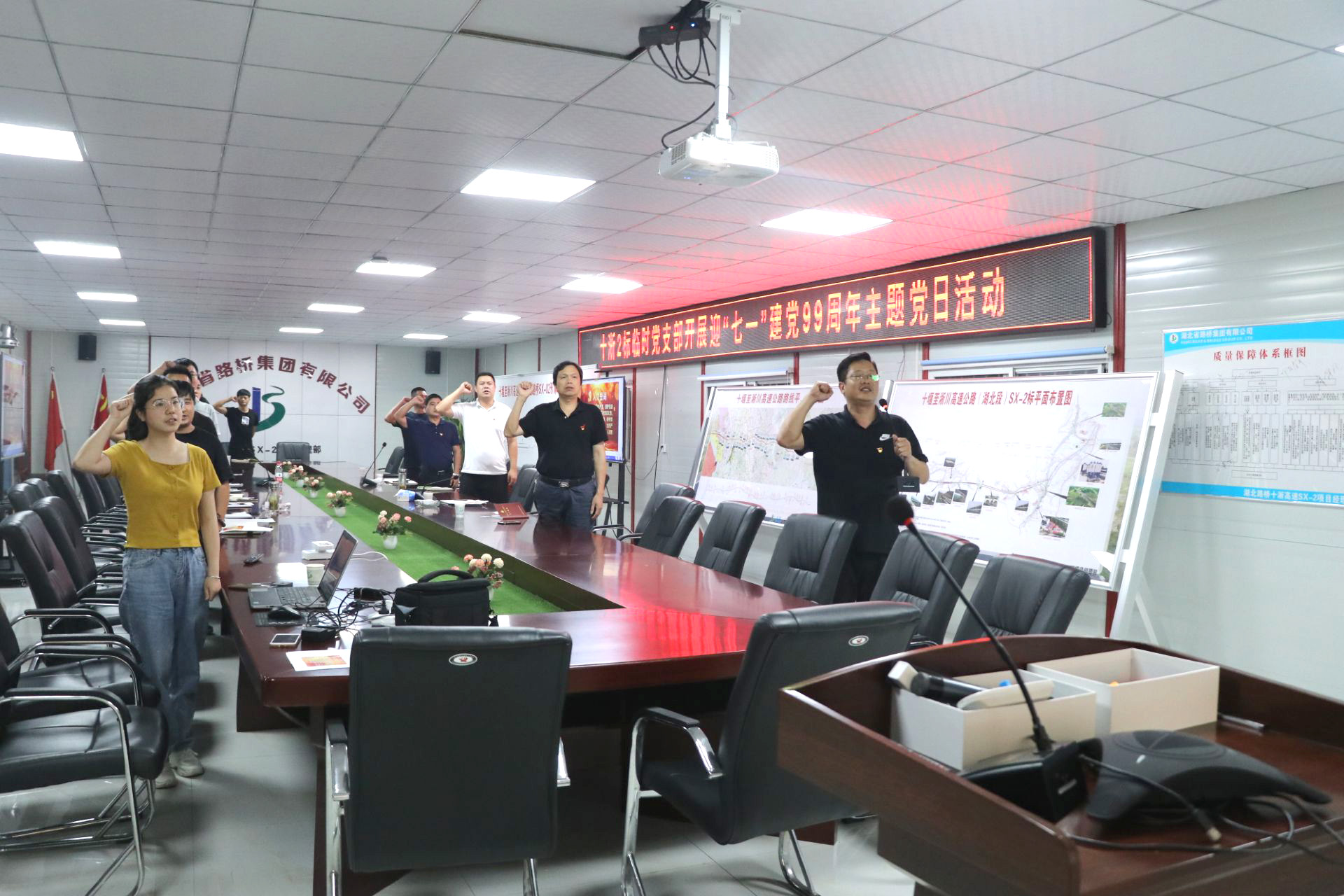 十淅2標項目臨時黨支部通過奏國歌、重溫入黨誓詞、講授專題黨課及紅色詩篇朗誦等形式,引導黨員重溫紅色經典、堅守黨員標準,時刻與黨同心同德。