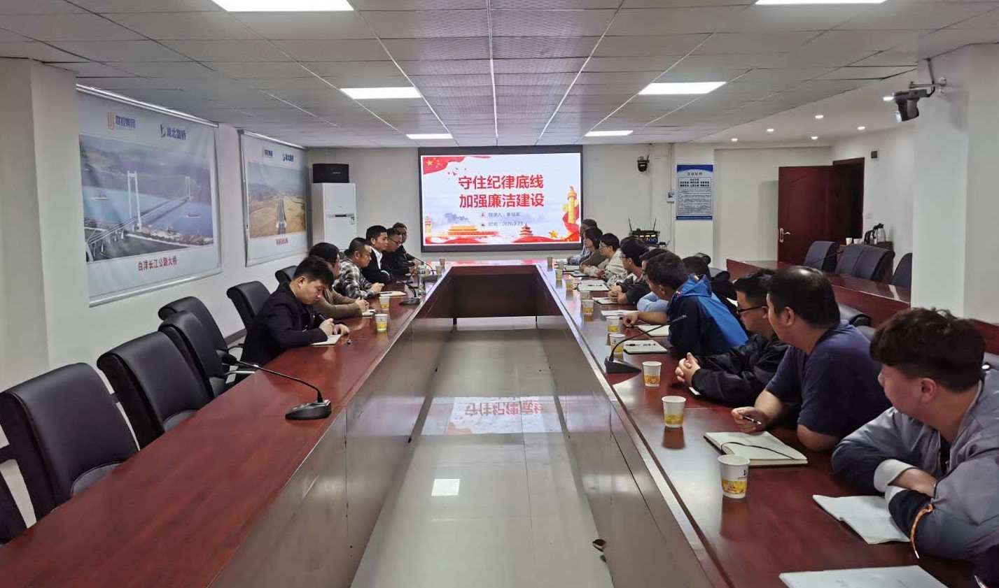 公司黨委委員、副總經(jīng)理袁觀富同志以“守住紀(jì)律底線、加強(qiáng)廉潔建設(shè)”為主題,為咸九二標(biāo)項(xiàng)目部全體黨員、群眾講廉政專(zhuān)題黨課,引導(dǎo)員工強(qiáng)化政治意識(shí)、守住紀(jì)律底線,營(yíng)造風(fēng)清氣正的項(xiàng)目建設(shè)環(huán)境。他強(qiáng)調(diào),一要增強(qiáng)政治意識(shí)、堅(jiān)定理想信念,深入學(xué)習(xí)貫徹習(xí)近平新時(shí)代中國(guó)特色社會(huì)主義思想,用黨的創(chuàng)新理論武裝頭腦;二要筑牢思想防線、守住紀(jì)律底線,加強(qiáng)學(xué)習(xí),增強(qiáng)紀(jì)律觀念,提升自身修養(yǎng),從思想上緊繃廉潔自律之弦;三要加強(qiáng)廉政建設(shè),完善監(jiān)管措施,進(jìn)一步加強(qiáng)公司制度執(zhí)行力度,規(guī)范權(quán)力運(yùn)行,以永遠(yuǎn)在路上的堅(jiān)韌和執(zhí)著,推動(dòng)公司黨風(fēng)廉政建設(shè);四要發(fā)揮模范作用、敢于擔(dān)當(dāng)作為,黨員干部要充分發(fā)揮先鋒模范作用,敢于擔(dān)當(dāng),勇于克難攻堅(jiān),為湖北路橋持續(xù)健康發(fā)展做出積極貢獻(xiàn)。