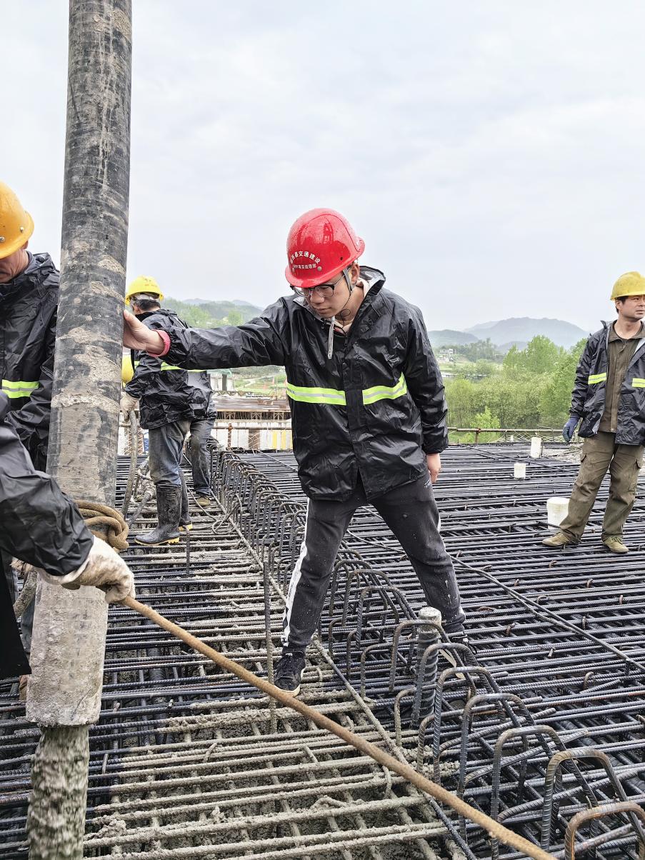 2021年秋,鄖西地區(qū)連續(xù)降雨,項目全線遭受水災,多處發(fā)生山體滑坡,致使道路受阻。面對來勢洶洶的洪水,劉邦主動請纓冒雨加入防洪搶險小組,拉設警戒線、協(xié)調(diào)人員和車輛、轉(zhuǎn)移器材設備和施工材料……在劉邦和其他小組成員的奮戰(zhàn)下,搶險小組僅用時5小時,便將現(xiàn)場設備和材料全部安全轉(zhuǎn)移。抗洪過后,劉邦向黨組織提交了入黨申請書,他在入黨申請書中這樣寫道:“在抗洪搶險過程中,我被路橋鐵軍堅守一線、不畏艱險的精神所感染,我會向他們看齊,爭取早日加入中國共產(chǎn)黨。”