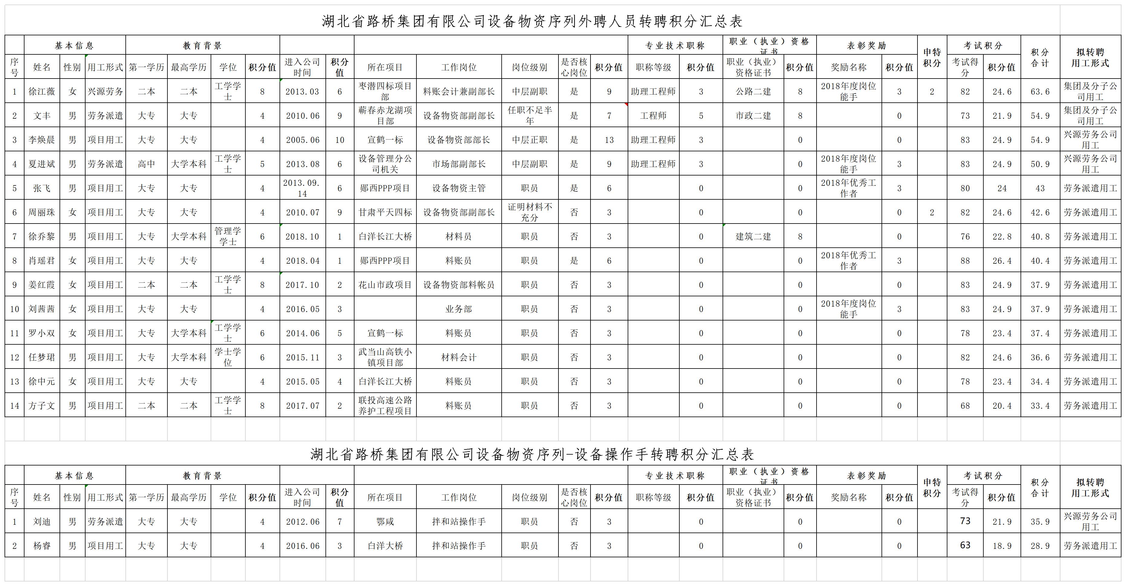 湖北省路橋集團有限公司2019年擬轉聘人員公示