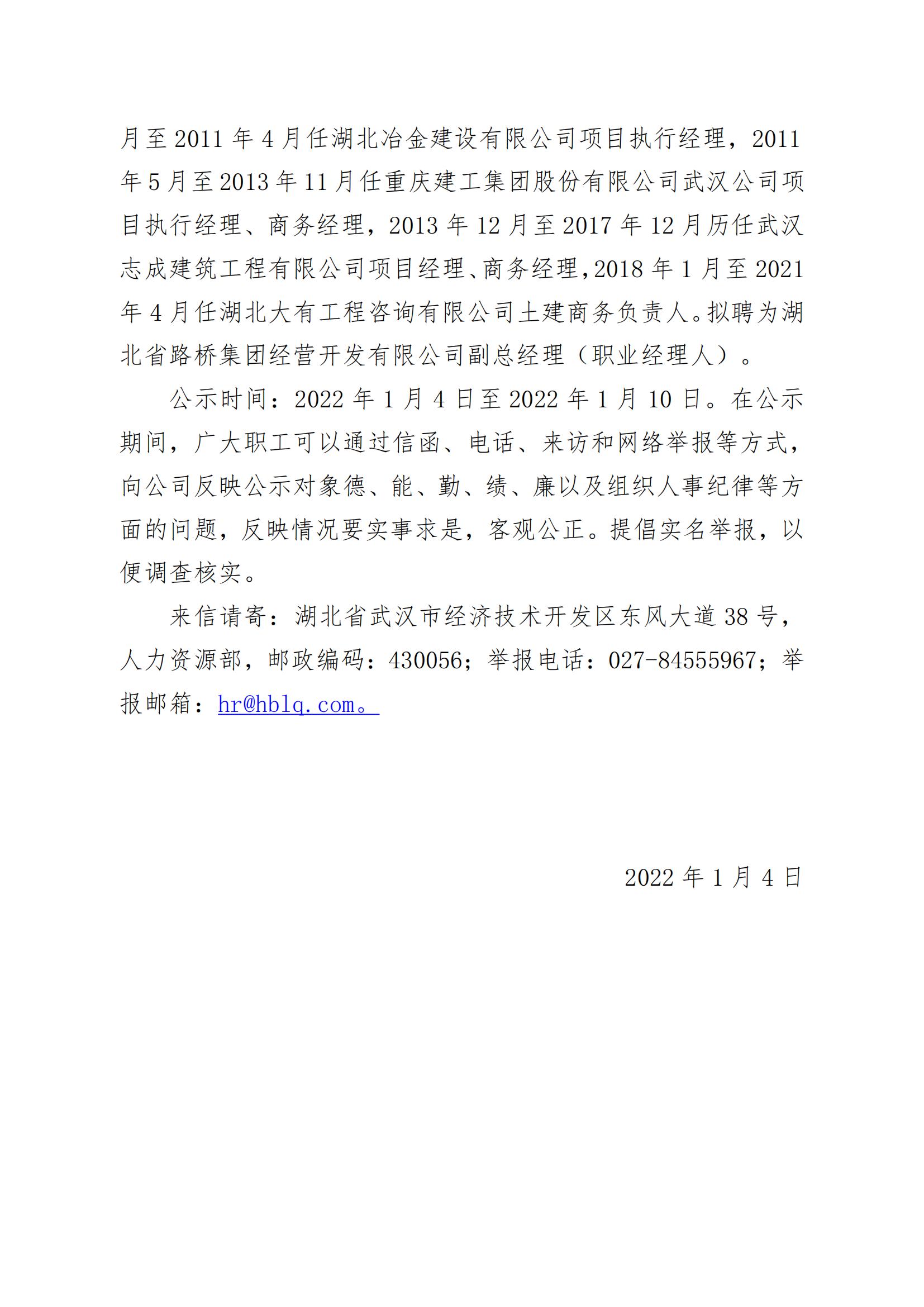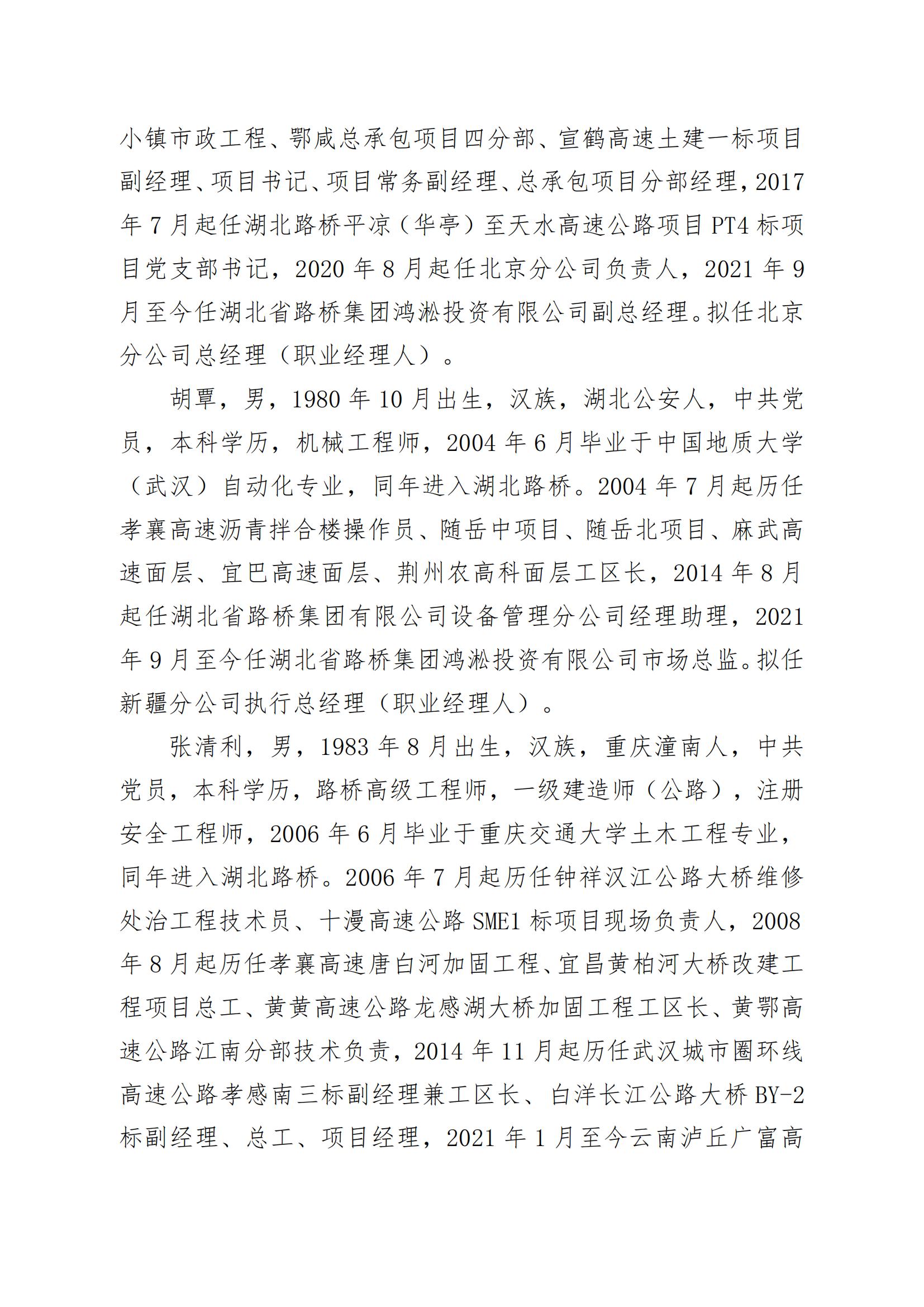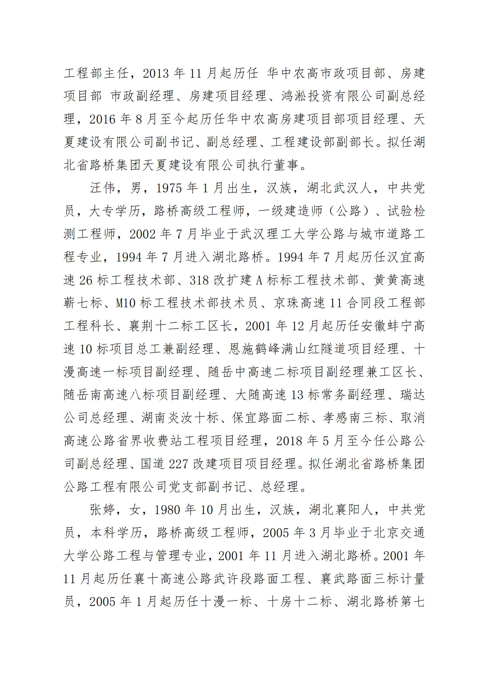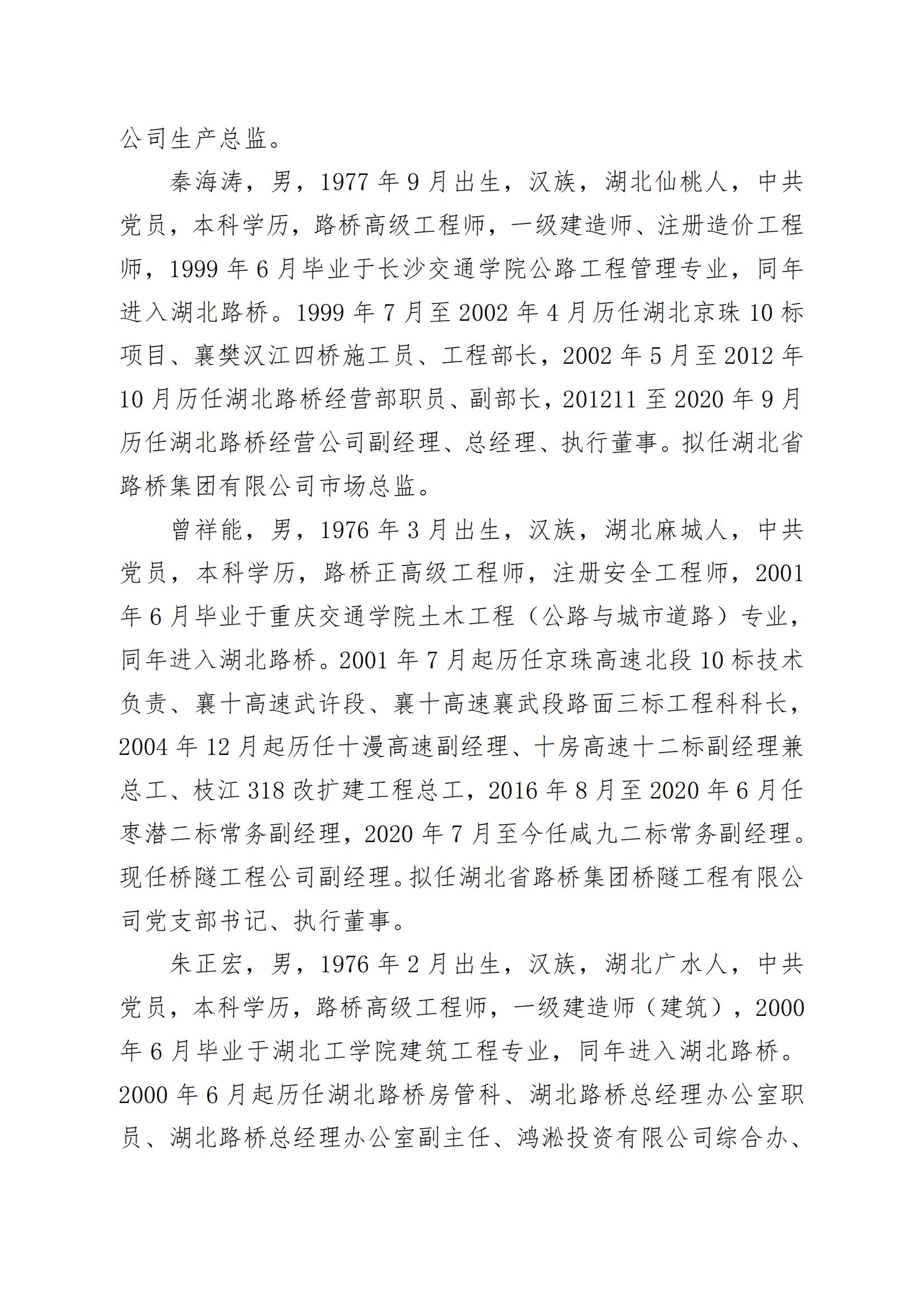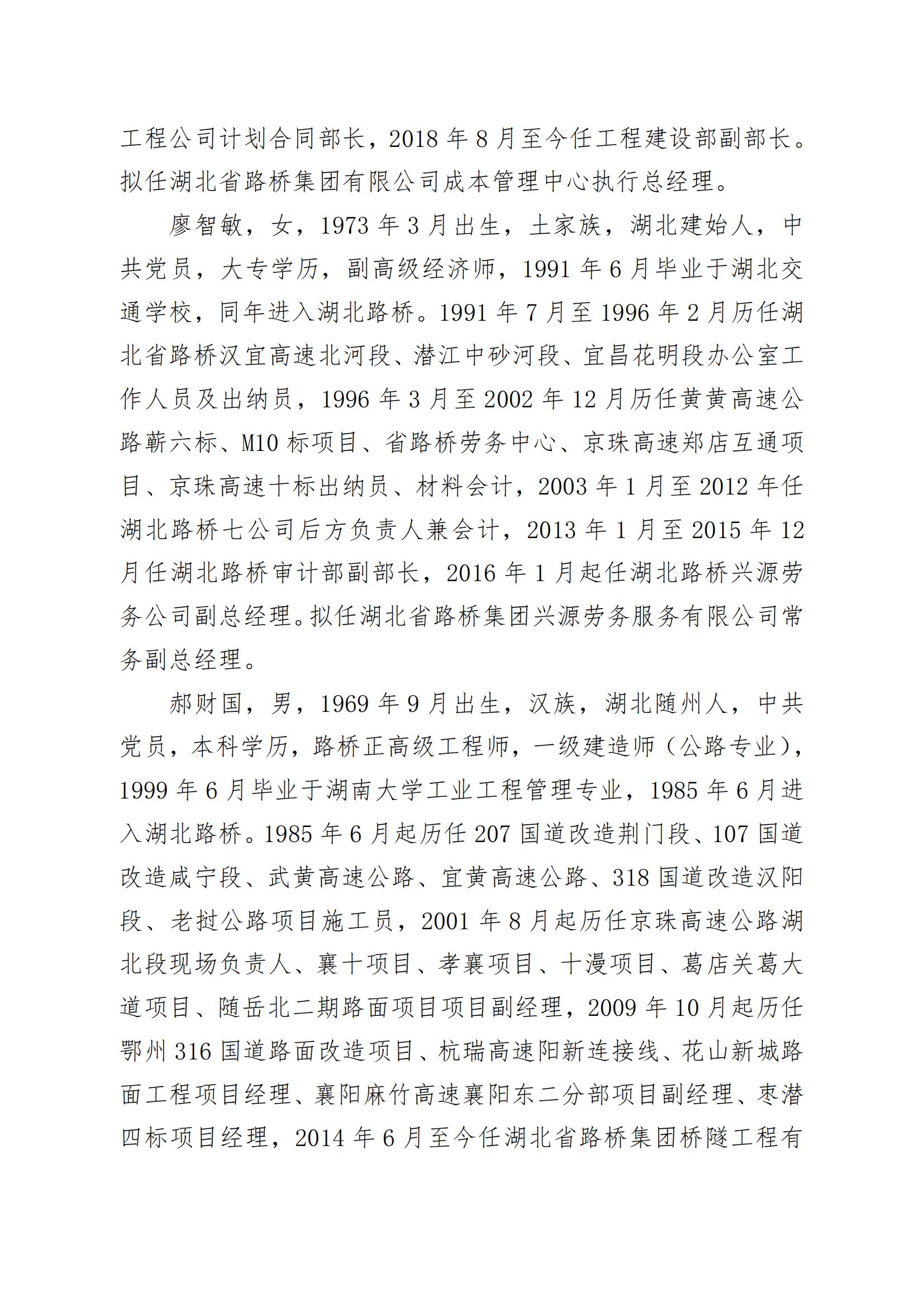 湖北省路橋集團有限公司擬提拔任用中層管理人員任前公示