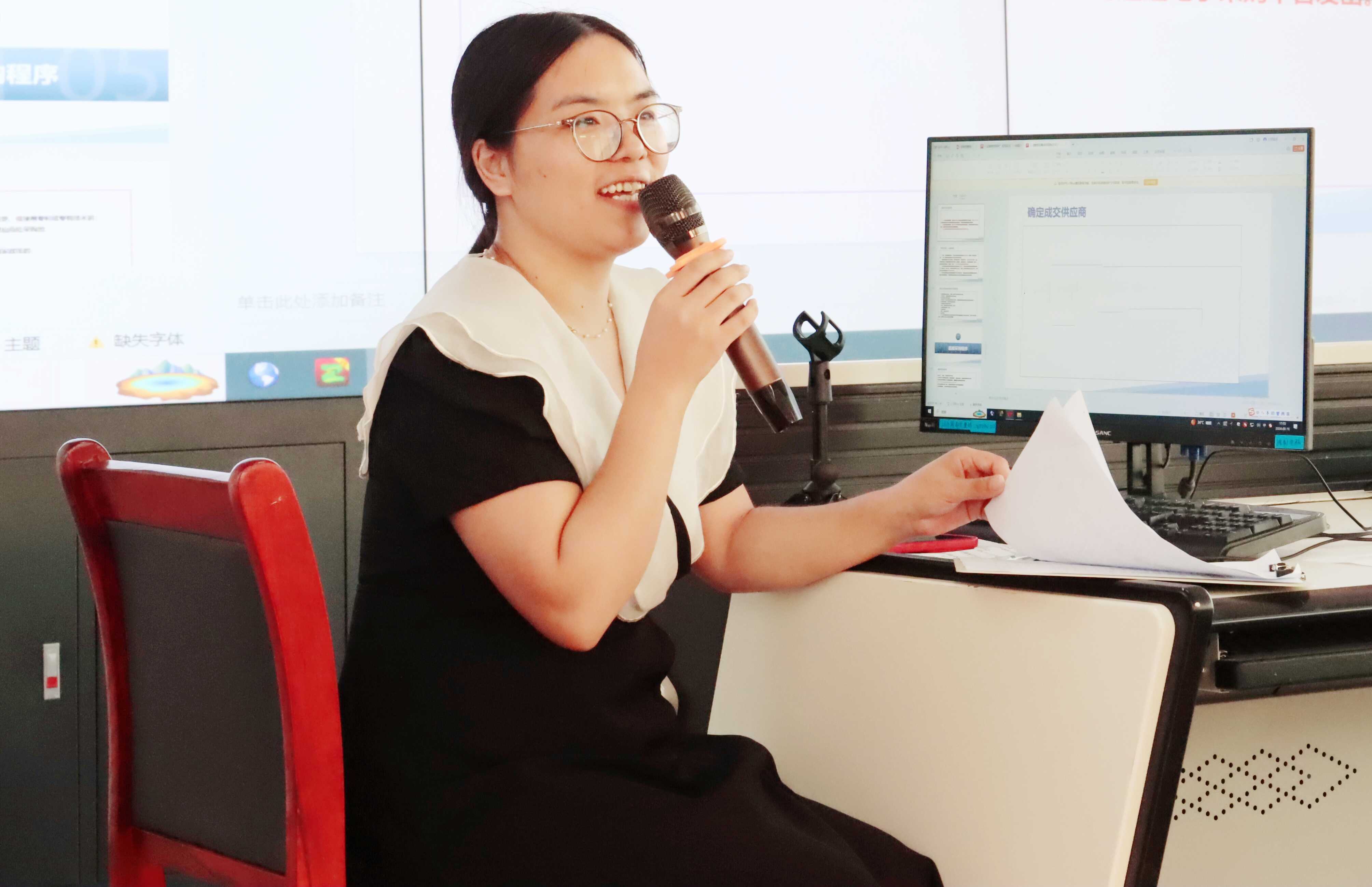 資產(chǎn)管理部副部長雷玲以《物資設備類非招標方式采購管理工作流程》為題,立足設備物資工作實際,系統(tǒng)講述了基礎業(yè)務、工作重難點、規(guī)章制度、風險管理等內(nèi)容,使參培人員增強了對制度的認知及理解。