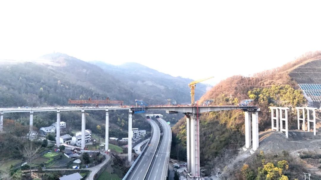 項目直擊丨竹山產業園跨谷竹高速大橋左幅連續剛構成功合龍